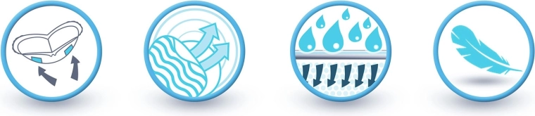 The multi-layer, airy structure improves airflow, is gentle on the skin, and helps prevent irritation from heat and moisture.