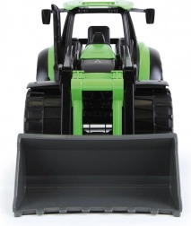 A robust children's tractor with a front loader in the DEUTZ FAHR Agrotron design impresses with realistic detailing at a 1:15 scale. It features a functional front bucket, is made of high-quality plastic, and is suitable for indoor and outdoor play. Length 45 cm.