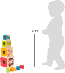 Each block is decorated with cheerful animal motifs and bold colors that encourage exploration. Precise cutouts promote patience and focus, and tower building supports hand stability and spatial imagination. The quality wooden material is pleasant to the touch and durable for everyday play.