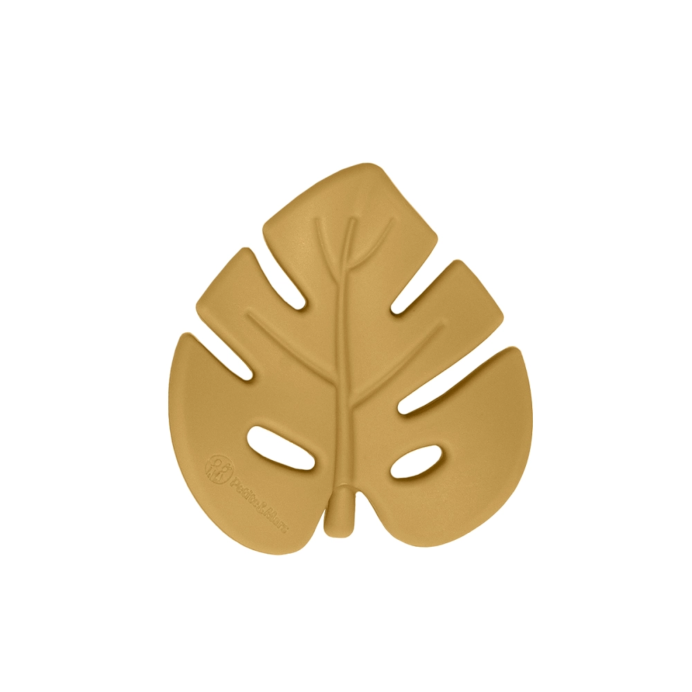 Short spoon and fork with soft edges for safe self-feeding practice. Leaf-shaped teether massages gums and can be cooled.