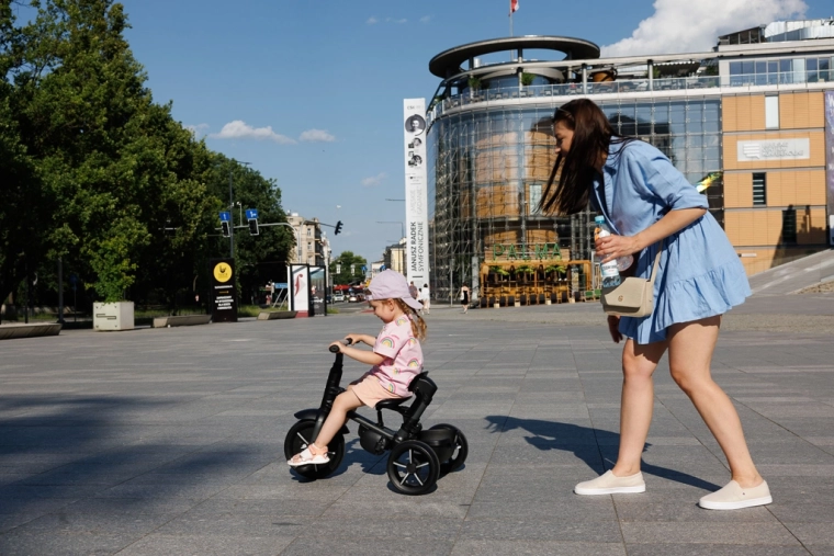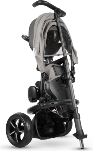 - 3-click folding system without tools – quick storage and transport; once folded, you can pull the tricycle like a travel bag.