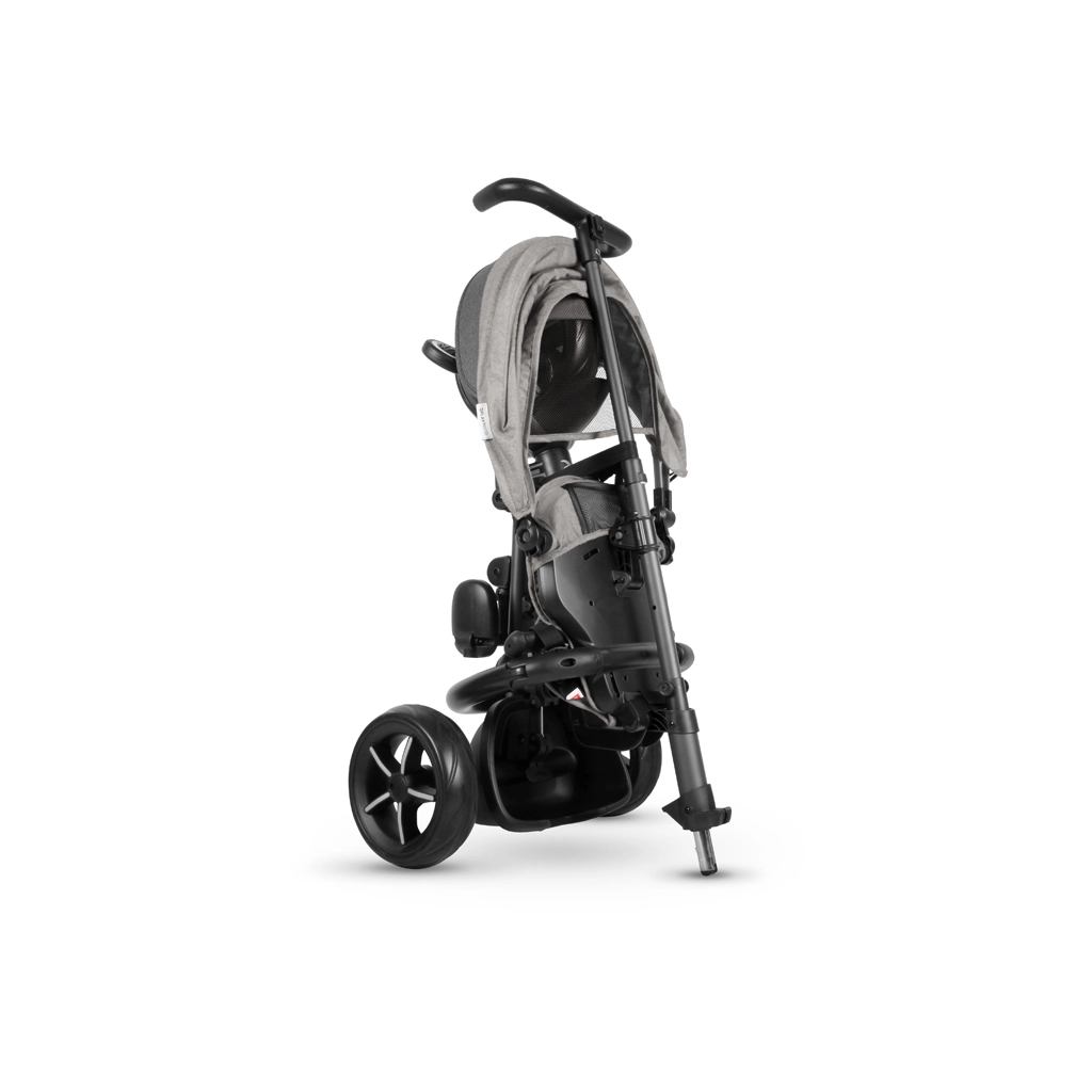 Folds in just a few clicks without tools. Once folded, the tricycle can be easily rolled like a travel bag – ideal for the car and public transport.