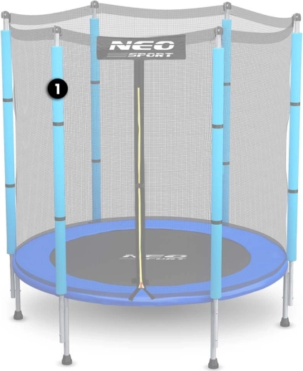 This top post is compatible with trampolines with a diameter of 140 cm (4.5 ft) and an outer net. Thanks to its precise length, it provides reliable support for the net up to approximately 150 cm high, contributing to safe trampoline use. The blue color matches the original NEO-SPORT accessories.