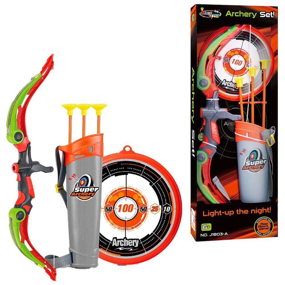 • Complete set: bow, glowing arrows, and target for immediate shooting.