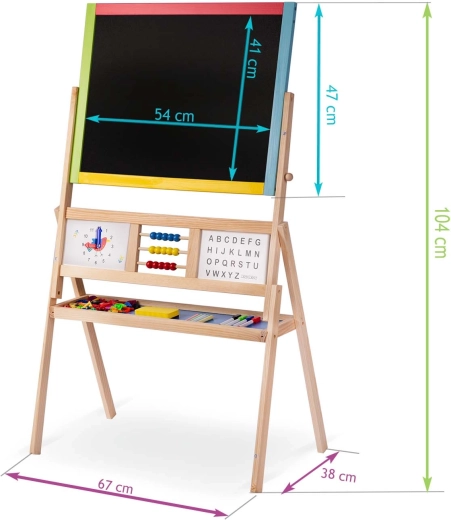 Discover the large double-sided board for kids from Ricokids, combining a chalk and magnetic surface in one. A stable frame, rotating board, learning clock, abacus, and a rich set of accessories make it the perfect tool for learning and creative fun.