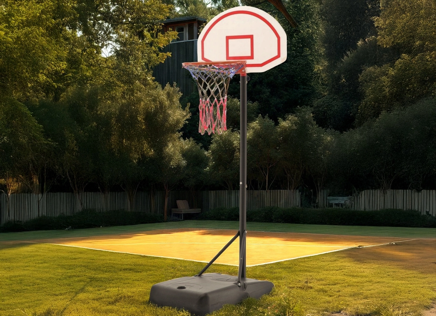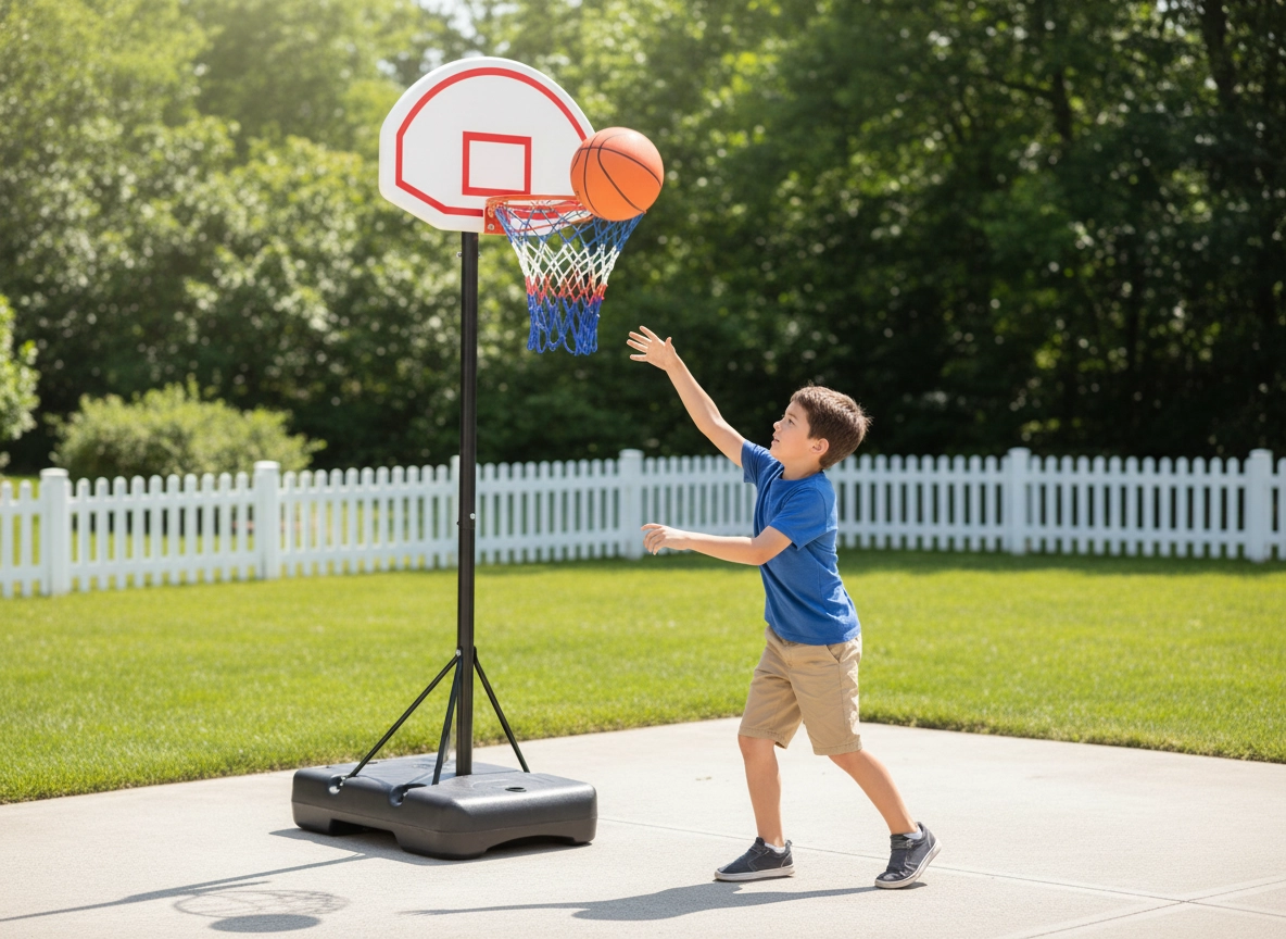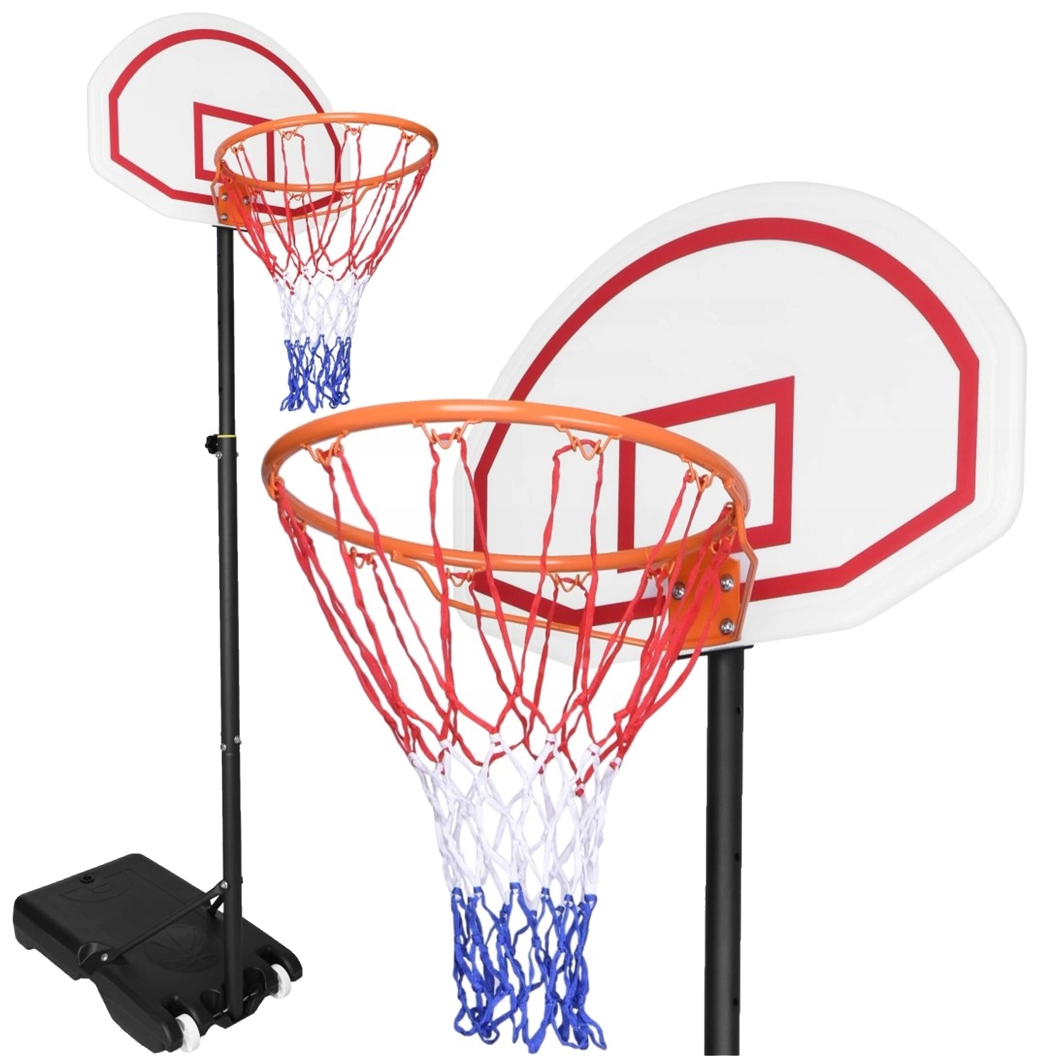This mobile basketball hoop is a great choice for family games and shooting practice. The robust frame, durable backboard, and metal rim with net ensure long service life and safe outdoor use.