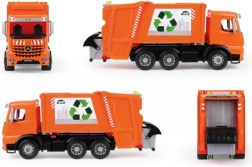 The orange Mercedes‑Benz Arocs garbage truck by Lena brings kids a realistic waste-sorting play experience. It features sturdy metal wheel axles (6 mm), durable plastic, a safety lock against accidental tipping, and two bins for even more fun and learning.