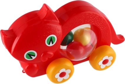 A cute pull-along kitty with colorful balls delights little children and develops their motor skills and coordination. When pulled, the balls inside move cheerfully and attract attention. The toy is made of durable plastic, has compact dimensions, and is suitable from 12 months. Interactive ball movement, a nostalgic design, and toddler-safe construction make it a great gift for those first steps.