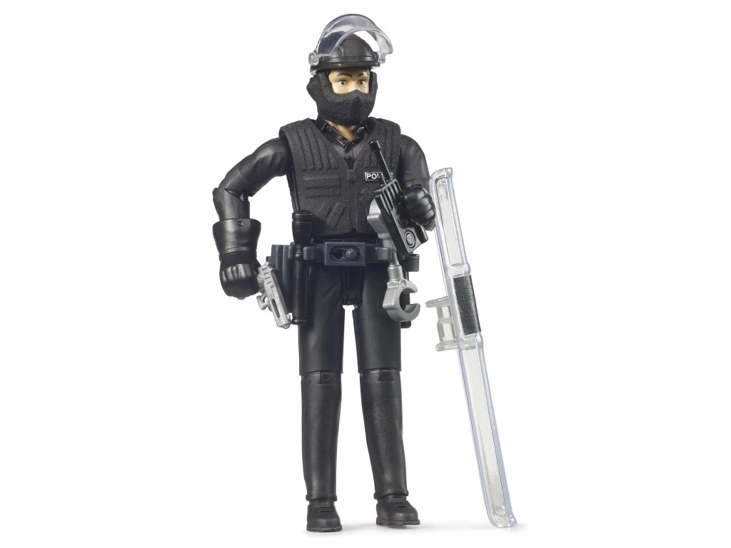A realistic police officer figure in riot gear from BRUDER that develops children’s imagination and skills. Thanks to movable limbs, gripping hands, and rich accessories, it’s ideal for action play scenarios and role play. The durable design and 1:16 scale ensure great compatibility with BRUDER vehicles and long-lasting play every day.
