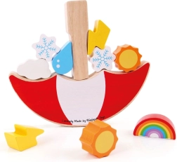 How high can you balance the weather pieces? This catchy balancing game combines fun and learning: kids develop coordination and logical thinking while stacking differently shaped and weighted pieces on the rocking umbrella. Every move requires focus and a gentle touch — the last successful player wins!
