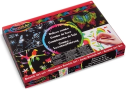 This deluxe scratch art set from MELISSA & DOUG offers a simple and engaging way to create original pictures. Each sheet is coated with a black layer that conceals rainbow and bold colors. Just gently scratch with the included stylus and the colors come to life instantly.