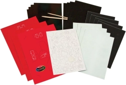 - Set includes: 16 scratch pictures (approx. 21.5 × 14 cm), 2 wooden styluses, stencils, 3 display stands.