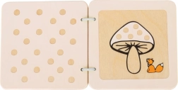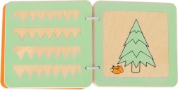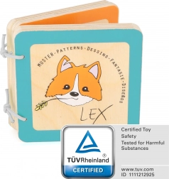 The wooden sensory book with fox Lex offers children a first encounter with simple shapes, cutouts, and illustrations that spark curiosity and imagination. The robust workmanship, smooth edges, and metal rings ensure safe and comfortable browsing even for the smallest hands.