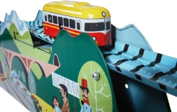 Authentic model of a mountain railway made of printed tin with a mechanical spring motor wound by a key. Enjoy smooth vehicle movement along the track thanks to the rack guidance, realistic ascents and descents, and precise KOVAP craftsmanship in 1:120 scale. Ideal for collectors and lovers of classic tin toys.