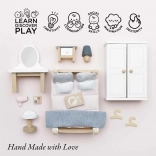 The bedroom set is designed in a classic style with pleasing neutral tones that harmoniously complement every child's dollhouse.