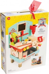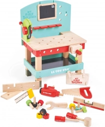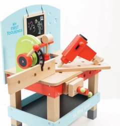 “My First Workbench with Tools” is ideal for little craftsmen who want to explore the world of tools and workshops. This toy is made from high-quality FSC wood, ensuring long-term durability and environmental friendliness. It includes 20 parts, including a drill, circular saw, clamp, saw, hammer, screwdriver, and many other tools. There's also a chalkboard for creative expression.