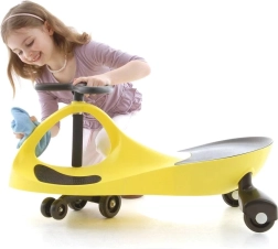 Fun and durable Didicar ride-on in yellow, powered solely by steering wheel movement. No batteries or chains – just turn and go! Suitable for children from 3 years and adults, with a load capacity up to 120 kg. Rides best on hard, flat surfaces. Easy to control, robust construction, safe design, and long service life.