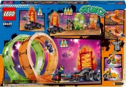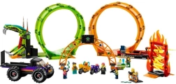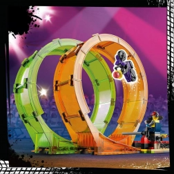 The LEGO City Stuntz Stunt Double Loop set delivers endless play possibilities for kids aged 7 and up. The arena layout with a fiery loop, snake-mouth loop, and a dramatic wall of fire takes stunt tricks to the next level. Flywheel-powered bikes quickly pick up speed and blast into action, while the monster truck with a ramp crowns the show with a spectacular jump.