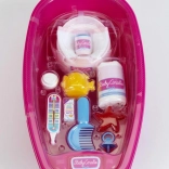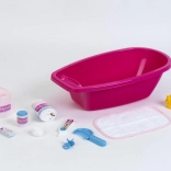 Discover the fun with a large bathtub for dolls, which comes with a complete set of accessories, inclusive of everything needed to mimic baby care. This set is perfect for developing children's imagination during play.