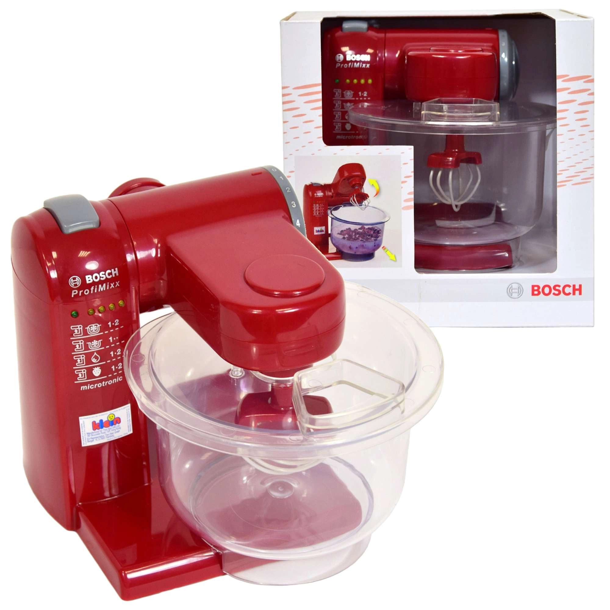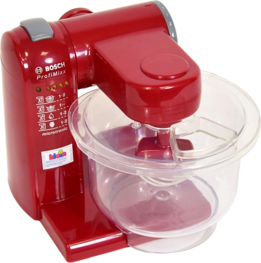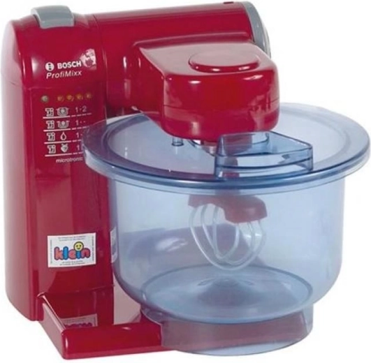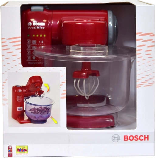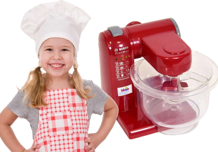 A realistic kids' kitchen mixer licensed by BOSCH will delight little chefs. It offers a removable transparent bowl, a tilting arm, 2 speed levels, and light and sound effects. The compact size is ideal for children’s hands, and the safe plastic design supports creative pretend baking and cooking.
