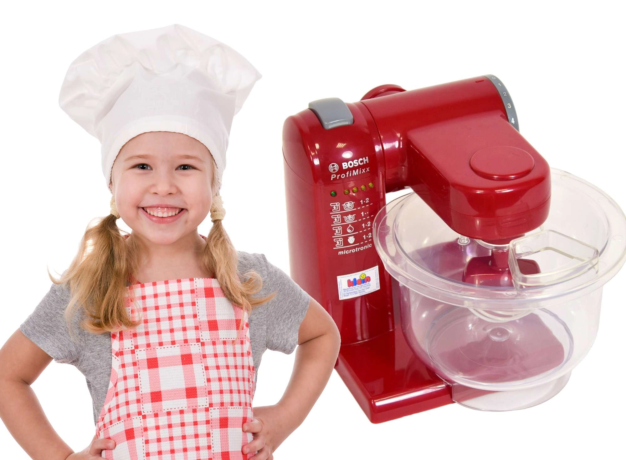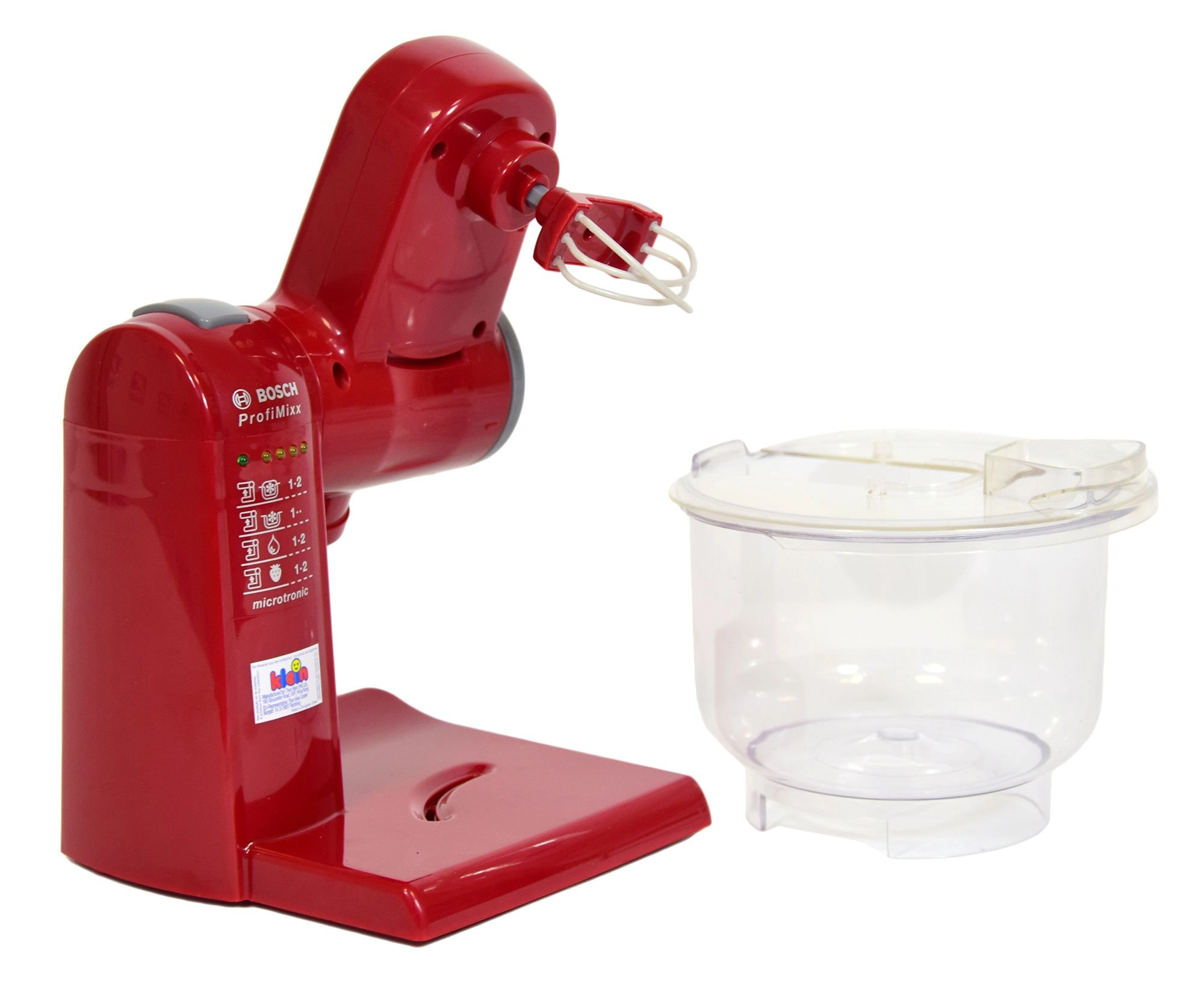 This stylish burgundy kids' kitchen mixer faithfully imitates an original BOSCH appliance. Thanks to light and sound effects, it feels like a real device and motivates children to imitate adults while cooking. The lightweight construction and safe materials ensure comfortable, worry-free use.