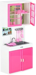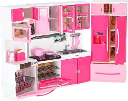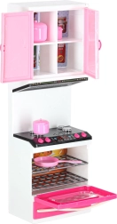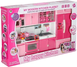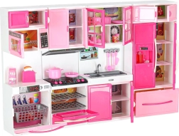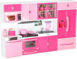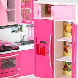 This modern doll kitchen brings children a world of imagination and everyday role play. Four connected segments let you assemble a complete kitchen with all the key elements—from a stove with oven to a fridge and sink. LED-lit burners and sounds give pretend cooking a realistic touch.