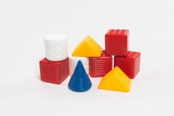 Discover a playful set of 9 colorful plastic blocks for the youngest children that develops fine motor skills, imagination, and creativity. Four colors and four shapes bring lots of fun every day—building castles and unique creations will delight both boys and girls. Made in the Czech Republic from high-quality, non-toxic plastic, suitable from 6 months.