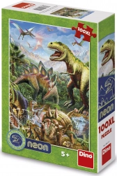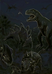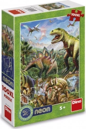 Discover the world of dinosaurs with this amazing neon puzzle! Your child will enjoy fun assembly with neon elements that light up in the dark, displaying the outlines of dinosaurs along with a dramatic mountain range in the background.