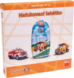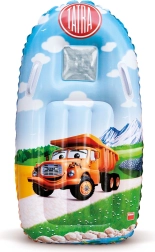The inflatable lounger with the orange Toy Tatra theme is ideal for children aged 3 and up, providing great comfort and fun by the water. It features a transparent window through which children can observe the underwater activities.