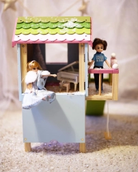 The doll is dressed in beautiful blue dresses with icy details and silver flakes. She dreams of a magical ball as the Snow Queen.