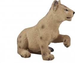 The figurine captures a lion cub in a natural pose with fine fur texture and authentic spots typical for young animals.