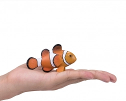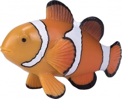 - The figurine offers an accurate depiction of the clownfish with characteristic black and white stripes on an orange body.