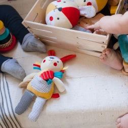 Introducing the Rattle Bunny - the ideal organic toy for newborns. Handmade from certified organic cotton ensures a gentle touch and safety for your child.