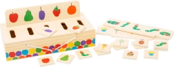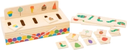 This quality wooden toy supports children’s natural development through play. Colorful wooden tiles are inserted into the corresponding openings in the lid, allowing kids to practice sorting by shape and color, hand–eye coordination, and patience. Thanks to its compact size, the box is a great companion at home and on the go.