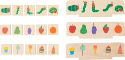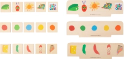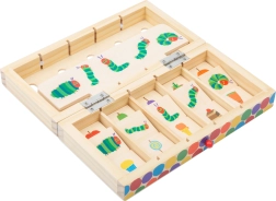 The design featuring the beloved Very Hungry Caterpillar instantly captures children’s attention. The tiles and lid are easy to handle, and the durable wooden construction ensures long-lasting use. After play, simply secure everything with the elastic band—nothing spills out.