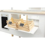 Discover the creative world with our multifunctional stand, designed for children's playful imagination. Its transformable structure allows easy transformation from a sales stand to a kitchen or cafe in no time. Multifunctionality in this stand includes a scale, drop-down shelves, drawing boards, and even a coffee machine with storage space containing two boxes. A great addition is the variable awning, which can be easily folded down to save space.