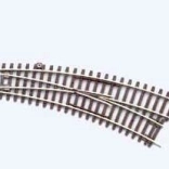 Piko curved switch with detailed reproduction of wooden sleepers and authentic colors. This switch combines a pair of 30° curves R3 and R2 for right direction and can be operated manually or with remote control.