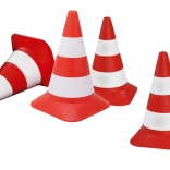 The set contains 4 cones, which can be used just like on a real road to outline a path, parking space, or block passage. Perfect for driving vehicles, scooters, and bicycles. Recommended for kindergartens, schools, and playrooms.