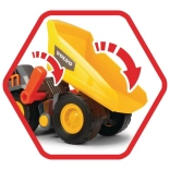 Children can use various vehicle features, including a movable dumper and load-responsive lights for interactive play.