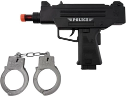 A fun police equipment set for kids that includes a police pistol and handcuffs. Ideal for pretend play, boosting imagination, and role-play at home or outdoors.