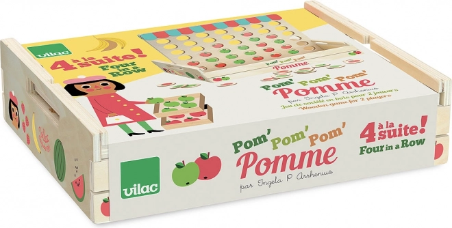 Wooden Tic-Tac-Toe with red and green apples are ideal for home play or on the go. In this game for two players, the winner is the first to create a row of four apples of the same color. Suitable for children from 5 years old.