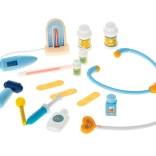 The doctor's set includes all the necessary tools for playing doctor, like a stethoscope, thermometer, syringe, and more.