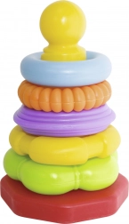 Pyramid with Colorful Rings is an ideal tool for developing motor skills and combinational abilities in children. It includes five different-colored rings of various shapes.