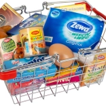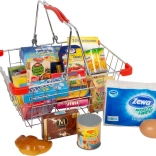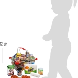 This cute yet sturdy SMALL FOOT metal shopping basket is a great addition to any children's shop or play kitchen. It is filled to the brim with plastic mock-ups of well-known foods and everyday products, so kids can realistically practice shopping, sorting, and serving. The selection of included mock-ups is variable, so each package may offer a different surprise.