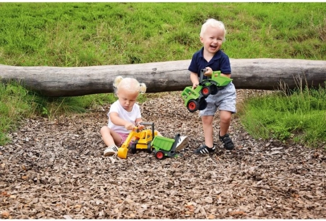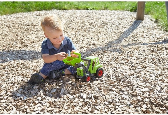 Discover an eco-friendly way to play with this active tractor with front loader from LENA. The toy is made from recycled plastic with wood content, is fully mechanically functional, and features a tilting cab for easy handling. Ideal for children from 2 years for indoor and outdoor play.