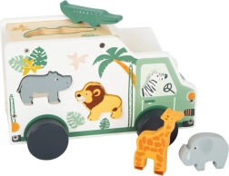 The Safari car provides space for developing imagination and fine motor skills by selecting and placing wooden animals.