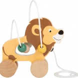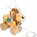 This pull-along wooden lion combines fun with learning. Children can move beads along the metal maze on the lion’s back, training their grip, precision, and focus. Smooth wheels and a practical cord invite pulling, so the toy motivates walking and natural movement.