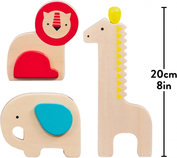 • 3-piece set: 2× maracas (elephant, lion) and 1× giraffe guiro