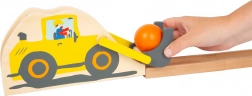 Discover a fun and safe wooden marble run with construction machines for little ones. Thanks to the modular design, kids can easily build different tracks, develop fine motor skills, and learn about cause and effect. Large colorful balls and robust parts are easy to grasp and safe for small hands. Includes a excavator, dump truck, construction site accessories, and 3 wooden balls for hours of creative play.