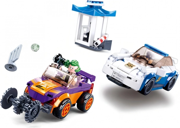 The set includes two vehicles - a blue-and-white police car and an original colorful car, both with a pullback mechanism. Each car features unique details, designs, and sizes, allowing countless play scenarios.